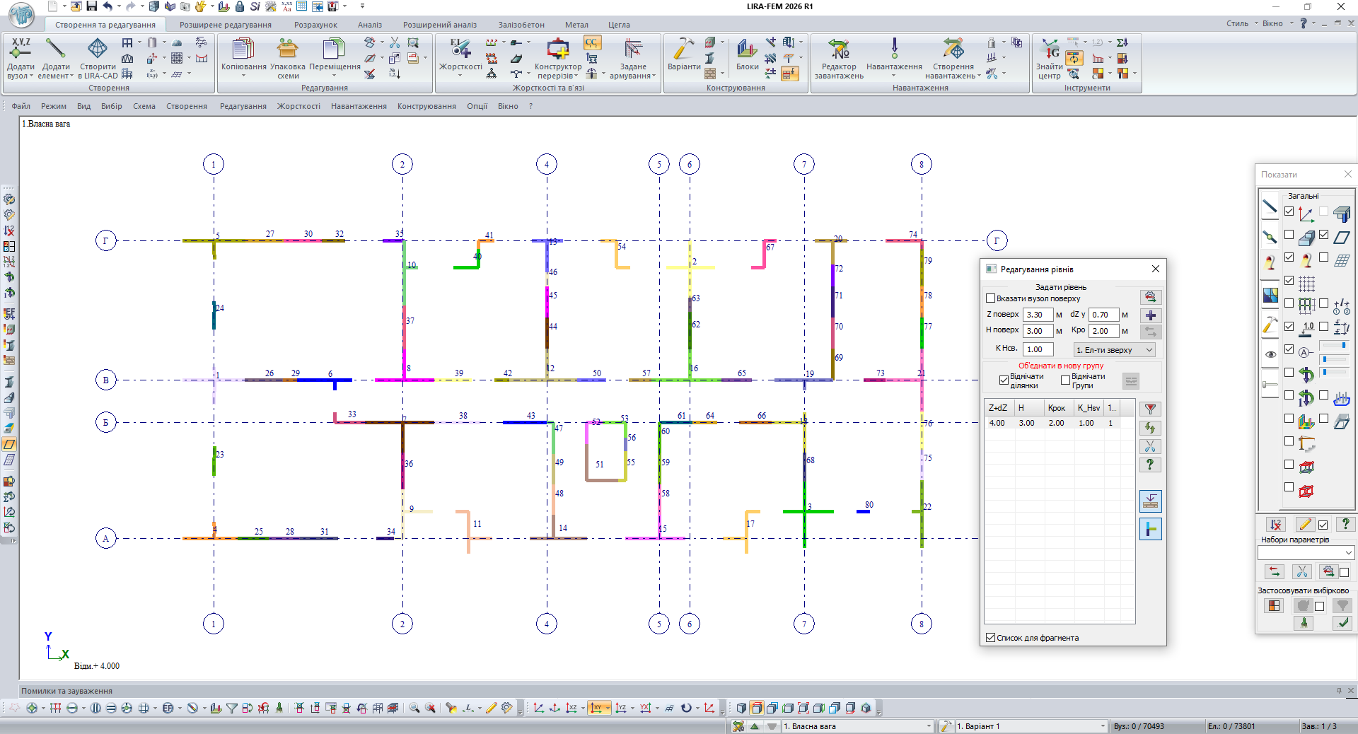 Схема будівлі та задання розрахункових рівнів для розрахунку армокам'яних конструкцій