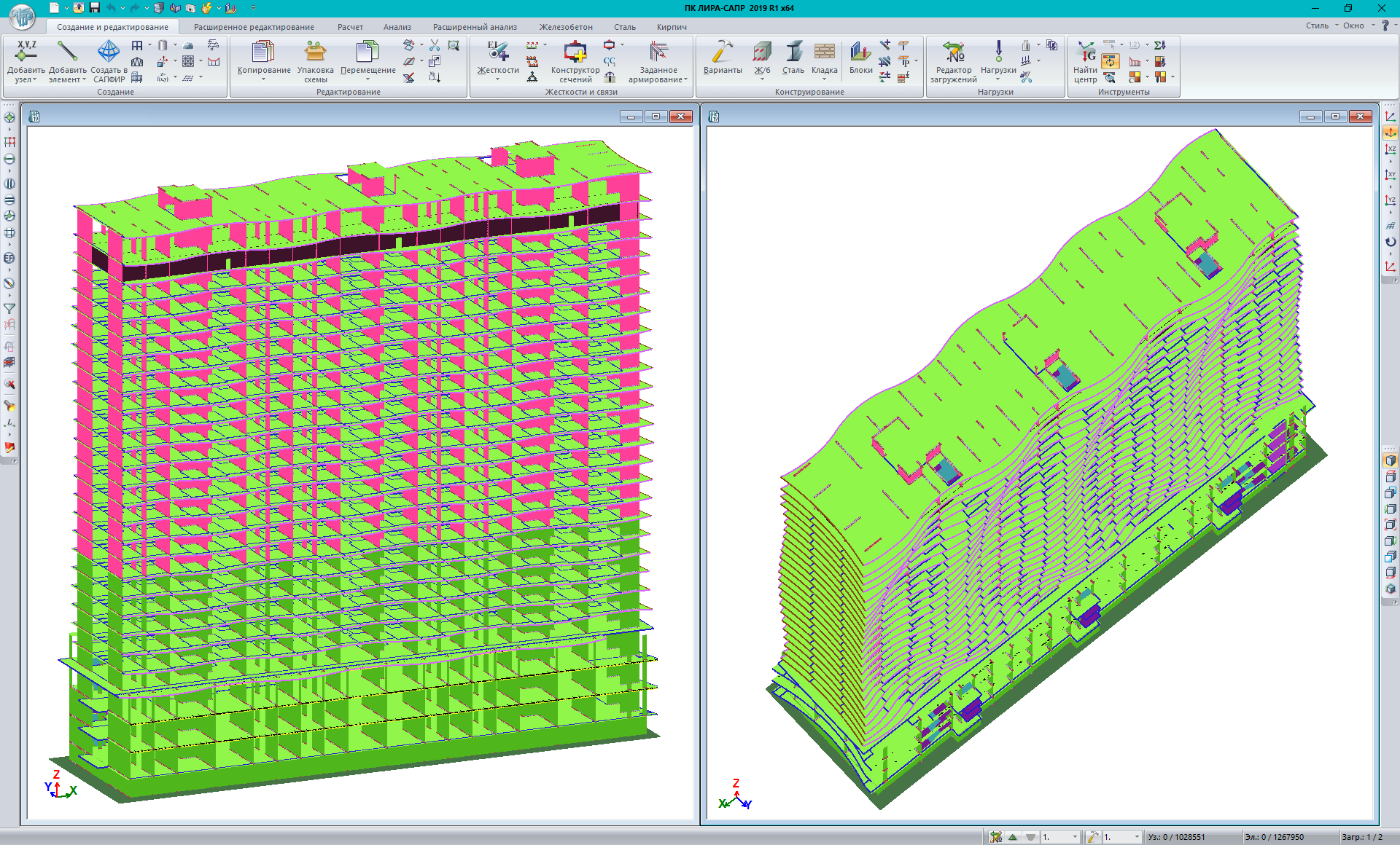 - У поточному релізі ПК ЛІРА-САПР 2019 прискорена процедура розкладання (факторизації) матриці для процесорів типу AMD (в першому релізі було реалізовано прискорення для процесорів типу INTEL)..