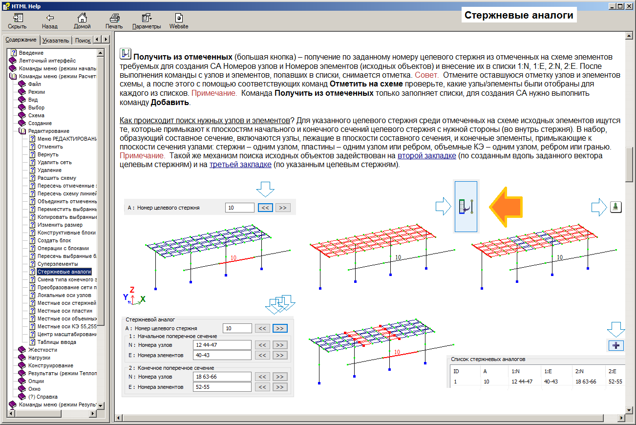 Стержневые аналоги, получить из отмеченных элементов (фрагмент контекстной справки)