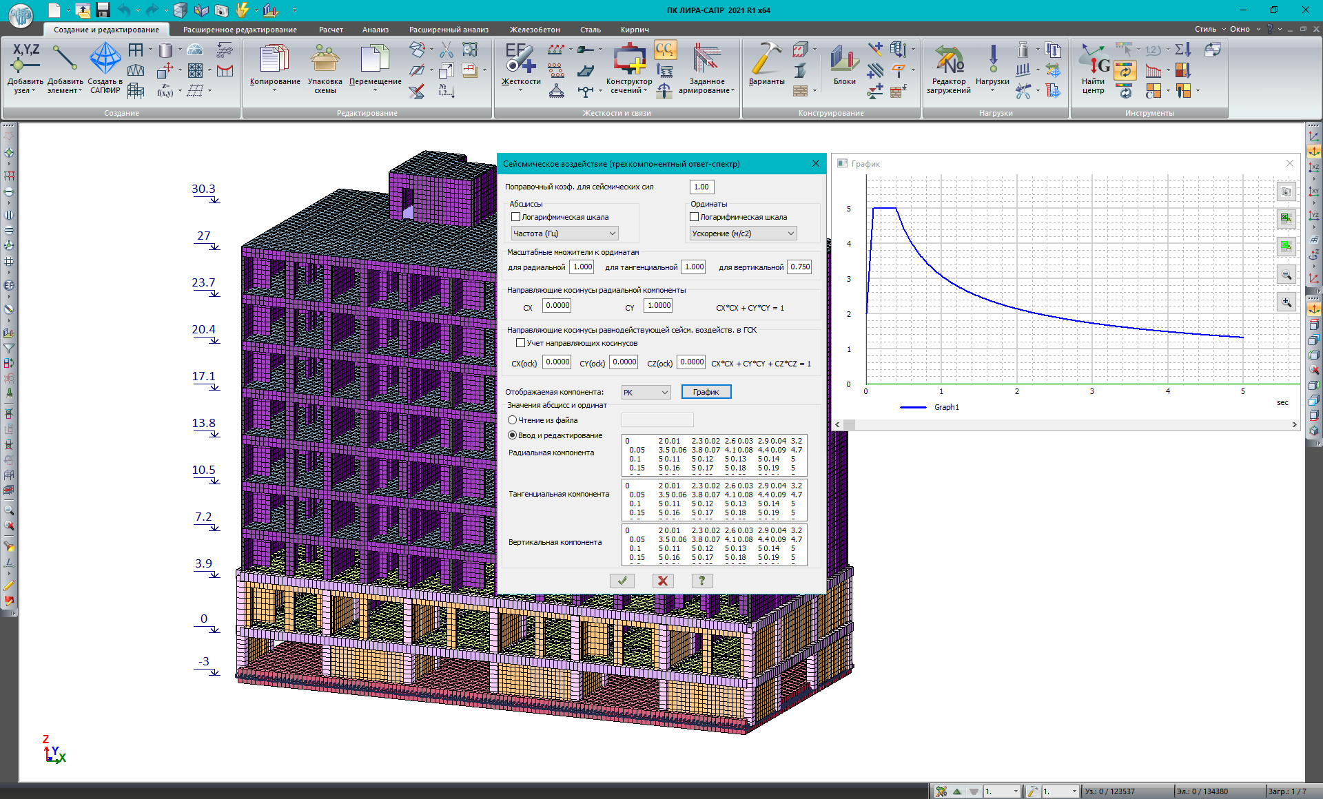 • Реализован новый модуль динамики (64) - трехкомпонентный ответ-спектр.