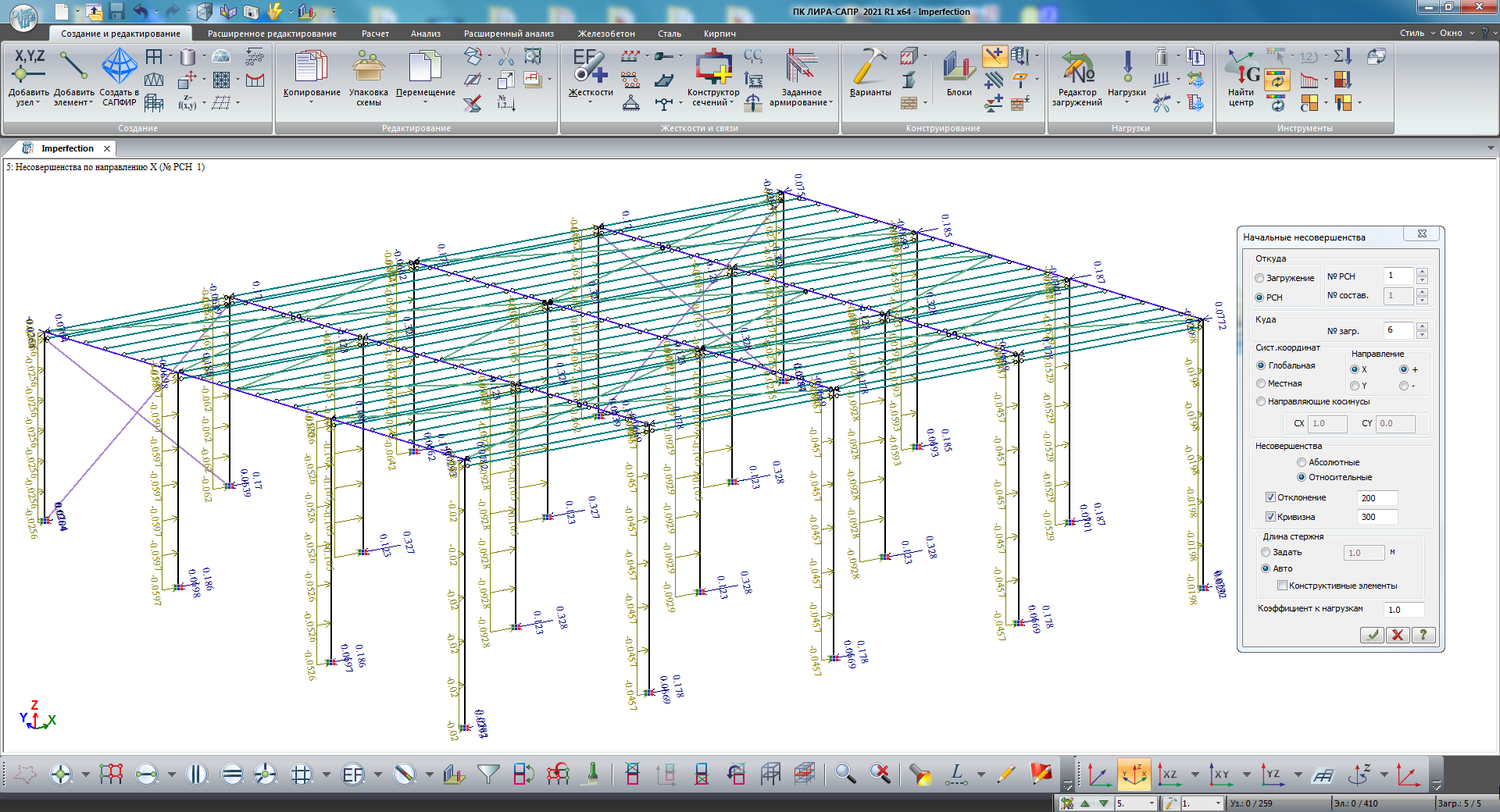 • Добавлен инструмент формирования начальных несовершенств для моделирования эффектов 1-го рода (отклонения при монтаже и локальных несовершенствах).