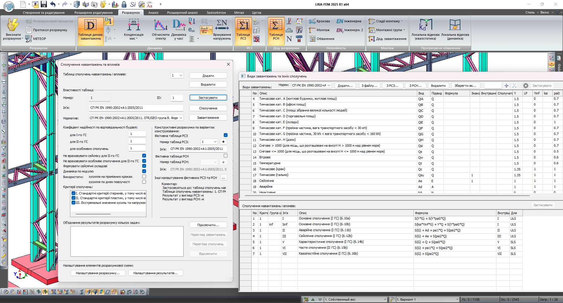 1. Заповнення таблиць РСЗ і РСН в LIRA-FEM