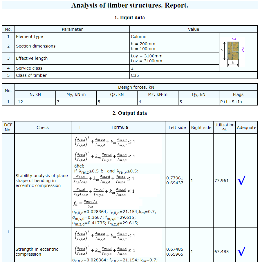 Перелік перевірок елементів колон по Eurocode 5