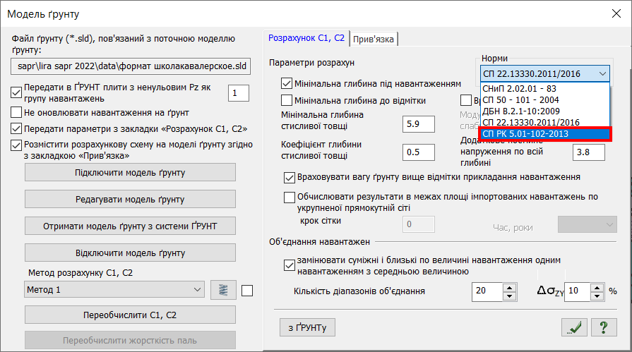 Розрахунок осадки вторинної консолідації у LIRA-FEM здійснюється за нормативом СП РК 5.01-102-2013. Методика розрахунку в даному нормативі не суперечить методиці, описаній у Еврокод 7.