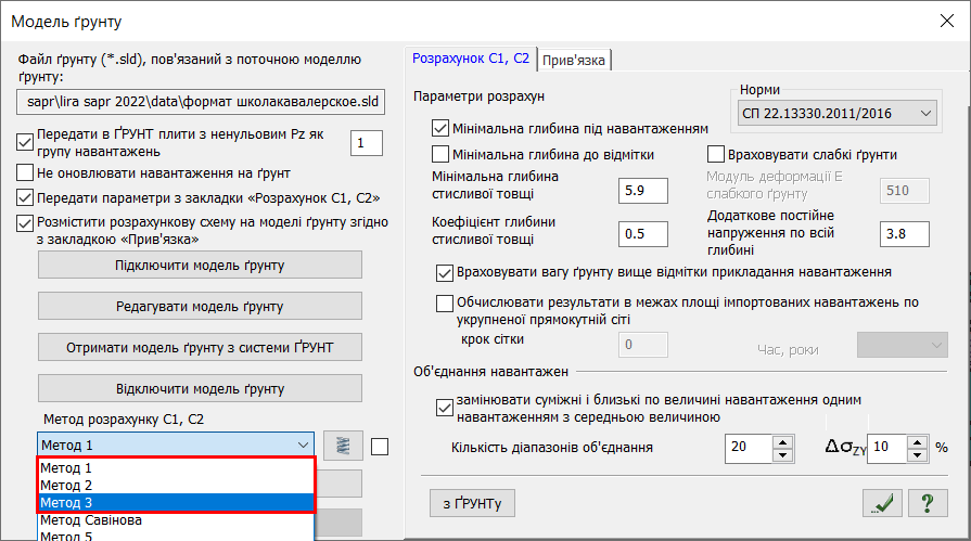 Для методів 1 та 3 коефіцієнт постелі С2 обчислюється за формулою: